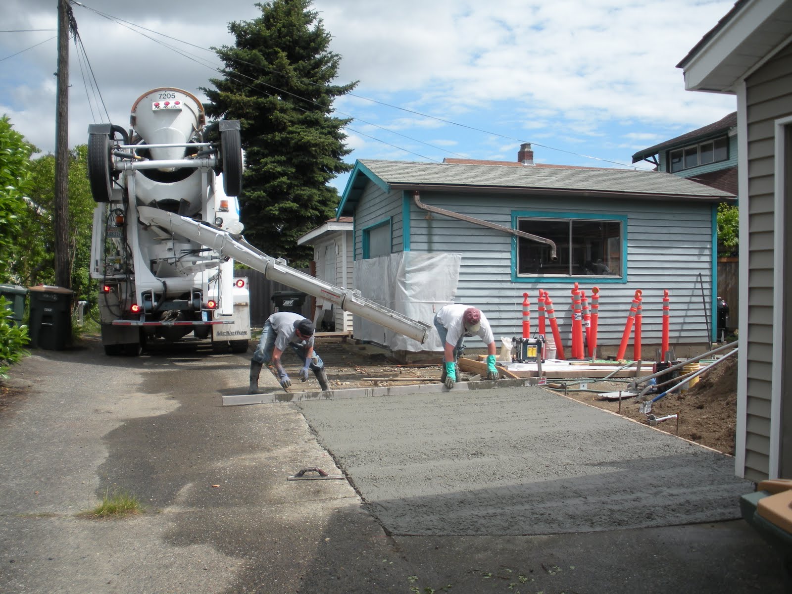 On Sunday morning (well, really it was about noon by the time we got underway) we bicycled over to Alki Beach for lunch. Returning, we dug right in with our paint brushes, applying another coat and running ourselves out of paint. With plenty of energy remaining (joking), Justin decided to take on mending the fence. We have to replace one of the posts since it rotted and fell over and then mount the end of the fence onto a new post.